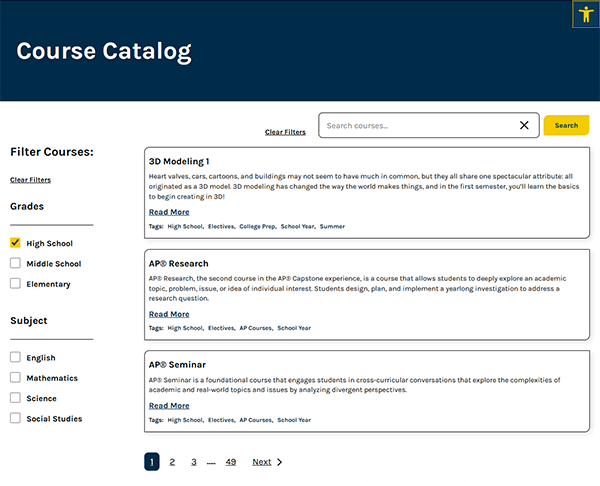 Previously, grade levels had individual static course pages with no interactivity. The client wanted a single catalog with filters and search that editors could update easily. I built a custom options page for courses and a plugin to handle AJAX filtering, allowing users to refine results instantly without page reloads. View the catalog here.