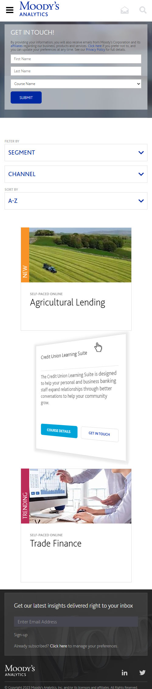 At Moody’s, I led the redesign of their course catalog from discovery through design and implementation. I analyzed site analytics and user behavior to uncover pain points like high bounce rates, siloed catalogs, and poor mobile usability.